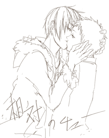 下書き段階のチューしてる絵もアップして欲しいという希望があったので。